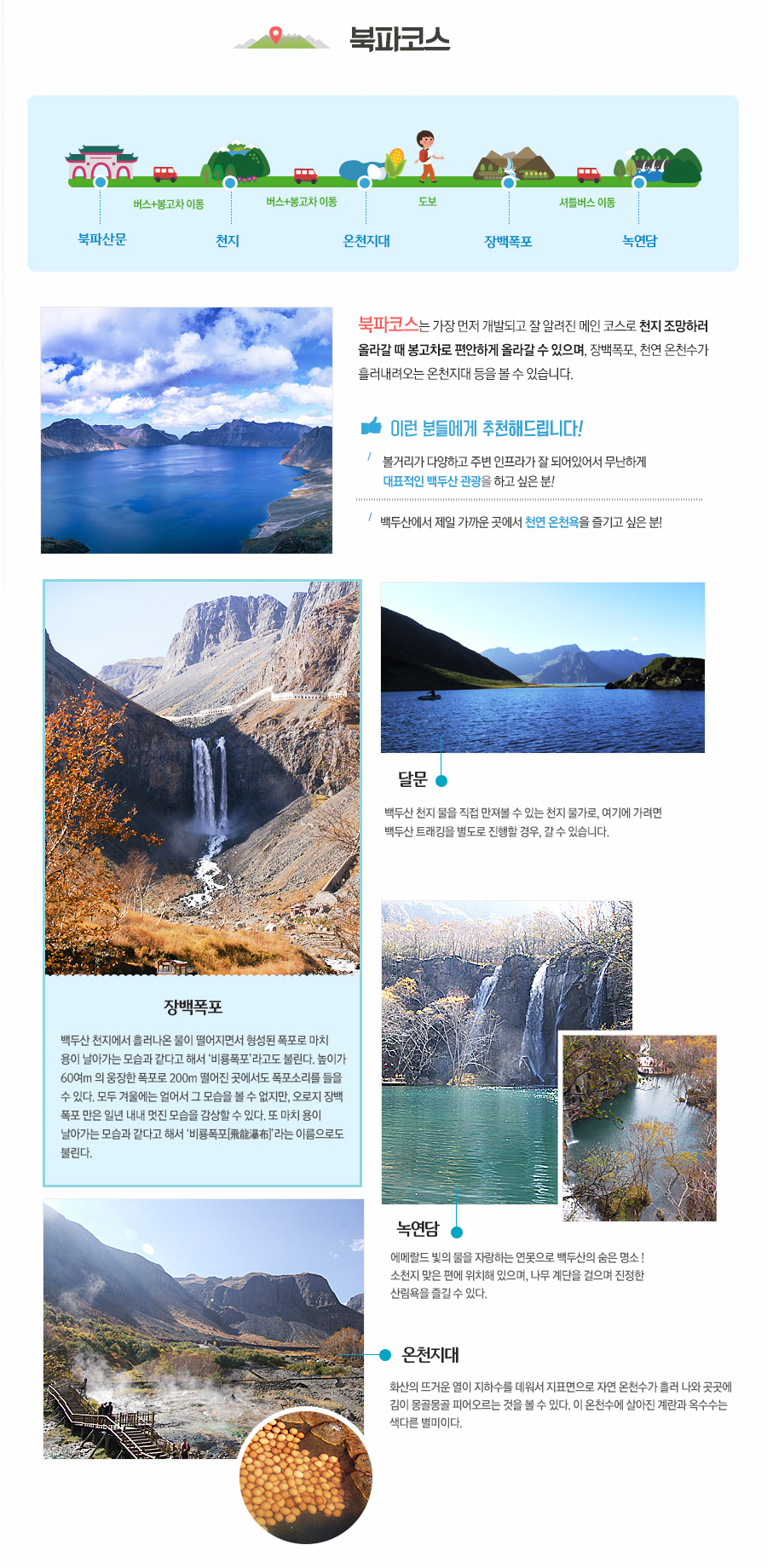 ▶ 백두산 북파코스- 천지(天池), 장백폭포, 온천지대 관광