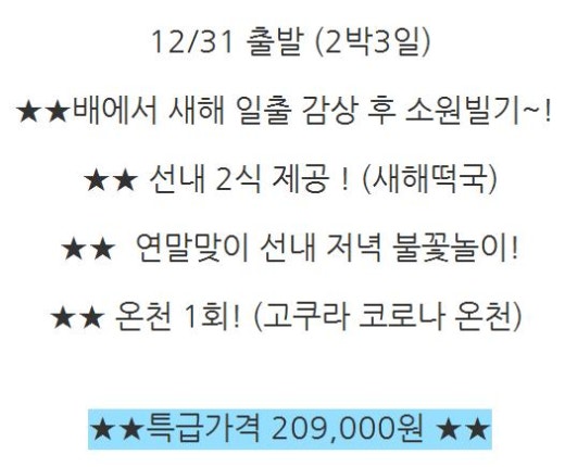 ■12/31 출발 (2박3일)■★★ 특급가격 209,000원 ★★